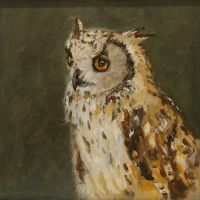 Brian Korteling, 'Owl', Norfolk Showground, Oil, 30x30cm, FOR SALE (10% to Raptor Trust charity