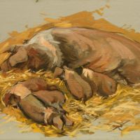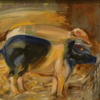 Artist Amanda Barrett, The Beast, 1933 Plymouth coupe, Park Farm, Norwich, Oil, 24x30cm,