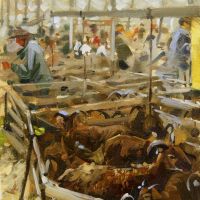 Artist Jennifer Greenland, Market Madness!, Norfolk, Oil, 11x14in, £275
