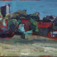 Artist Eleanor Alison, How Long till it Falls?, Burgh Castle, Norfolk, Oil, 12x12in,