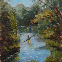 Artist Eleanor Alison, Rainbow Kayaks, Whitlingham, Oil, 10x12in, £180