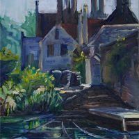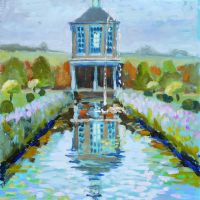 Artist Eleanor Alison, 'Garden Canal', Hunworth Hall, Norfolk, Oil, 12x12in, £250. Paint Out Gardens 2019