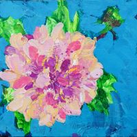 Artist Mary Blue Brady, 'Under the blush Dahlia sky', Hunworth Hall, Norfolk, Acrylic Mixed Media, 15x15cm, £150. Paint Out Gardens 2019