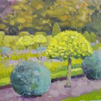 Artist Barbara Bernard, 'Box & Verbena', Houghton Hall Walled Garden, Oil, 12x10in, £300. Paint Out Gardens 2019