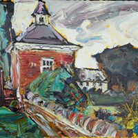 Artist Amanda Barrett, 'Chimneys and Pipes', Elsing Hall, Dereham, Norfolk, Oil, 24x30cm, £180. Paint Out Gardens 2019