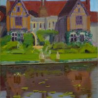 Artist Robert Dearman, 'Elsing Hall Reflections', Elsing Hall, Dereham, Norfolk, Oil, 7x10in, £225. Paint Out Gardens 2019