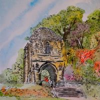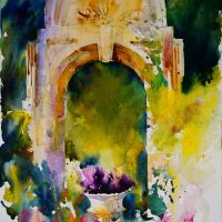 Artist Bobby Open, 'Elsing Hall Gateway', Elsing Hall, Dereham, Norfolk, Watercolour, 12x18in, £325. Paint Out Gardens 2019