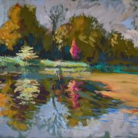Artist Stephen Johnston, 'Autumn Reflection', Elsing Hall, Dereham, Norfolk, Oil, 16x20in, £240. Paint Out Gardens 2019
