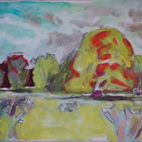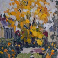 Artist Emma Perring, 'Yellow Tree', Bishop's House Gardens, Norwich, Oil, 20x30cm, £170. Paint Out Gardens 2019