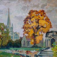 Artist Stephen Johnston, 'Ochre Fall', Bishop's House Gardens, Norwich, Oil, 16x20in, £350. Paint Out Gardens 2019