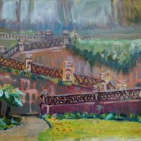 Artist Stephen Johnston, 'Terracotta Terraces', The Plantation Garden, Norwich, Oil, 20x16in, £350. Paint Out Gardens 2019