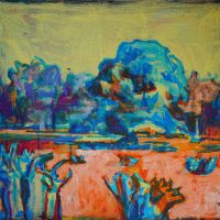 Artist Jack Godfrey, 'Woods in Blue', Elsing Hall, Dereham, Norfolk, Acrylic, 8x10in, £140. Paint Out Gardens 2019