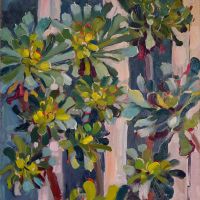 Artist Emma Perring, 'Madness in the Greenhouse', The Plantation Garden, Norwich, Oil, 14x11in, £290. Paint Out Norfolk Gardens 2019, First Prize