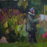 Artist Sam Robbins, 'Fairy Path', The Plantation Garden, Norwich, Oil, 8x8in, £280. Paint Out Gardens 2019