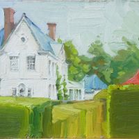 Artist Robert Nelmes, 'Curtains Drawn and Painted', Stody Lodge, Melton Constable, Norfolk, Oil, 9x12in, £350. Paint Out Norfolk Gardens 2019, Second Prize