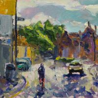 Artist Emily Faludy, 'Passing Clouds on High Street', Holt, Norfolk, Oil, 5x7in, £140. Paint Out Norfolk 2019 First Prize