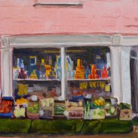Artist: Kate Gabriel, Title: Crowe's Greengrocers, Location: Holt, Norfolk, Media: Oil, Size: 10x8in, £220. Paint Out Holt 2019 Second Prize