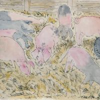 Artist: Eloise O'Hare, Title: Piggies 1, Location: Norfolk Showground, Media: Mixed Media, Size: 16x24in, £350
