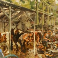 Robert Nelmes, 'Blacksmiths', Norfolk Showground, Oil, 30x40cm, SOLD, First Prize
