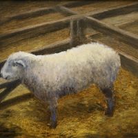 Artist: Paul Alcock, Title: Charollais Sheep, Location: Norfolk Showground, Media: Oil on board, Size: 12x16in, £250