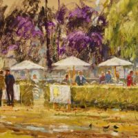 Paint Out 2017 saw an en plein air invitational event at the Royal Norfolk Show. Fifteen hardy artists painted all the colour and character of the UK’s largest two-day agricultural event amidst torrential downpours and mud to rival Glastonbury! From fairground to farriers, and pigs to poultry, there was plenty to paint. Our artists were positioned around the Norfolk Showground site, returning their wet artworks every few hours to our tent for a live art auction on the first day, and continually refreshed rolling exhibition over both days.
