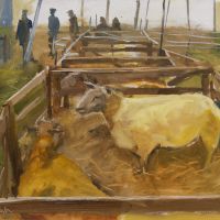 Artist: Brian Korteling, Title: Livestock Ring, Location: Norfolk Showground, Media: Oil, Size: 18x15cm, £150