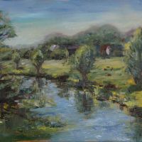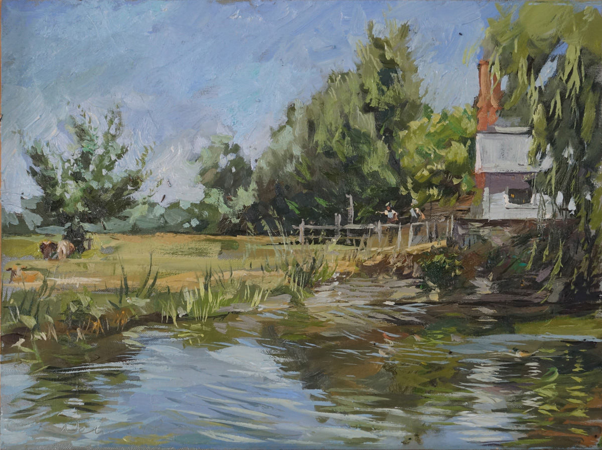 Artist Eleanor Alison, 'Tranquil Water Meadow', River Stour, Sudbury, Oil, 12x10in, £160. Paint Out Sudbury 2018