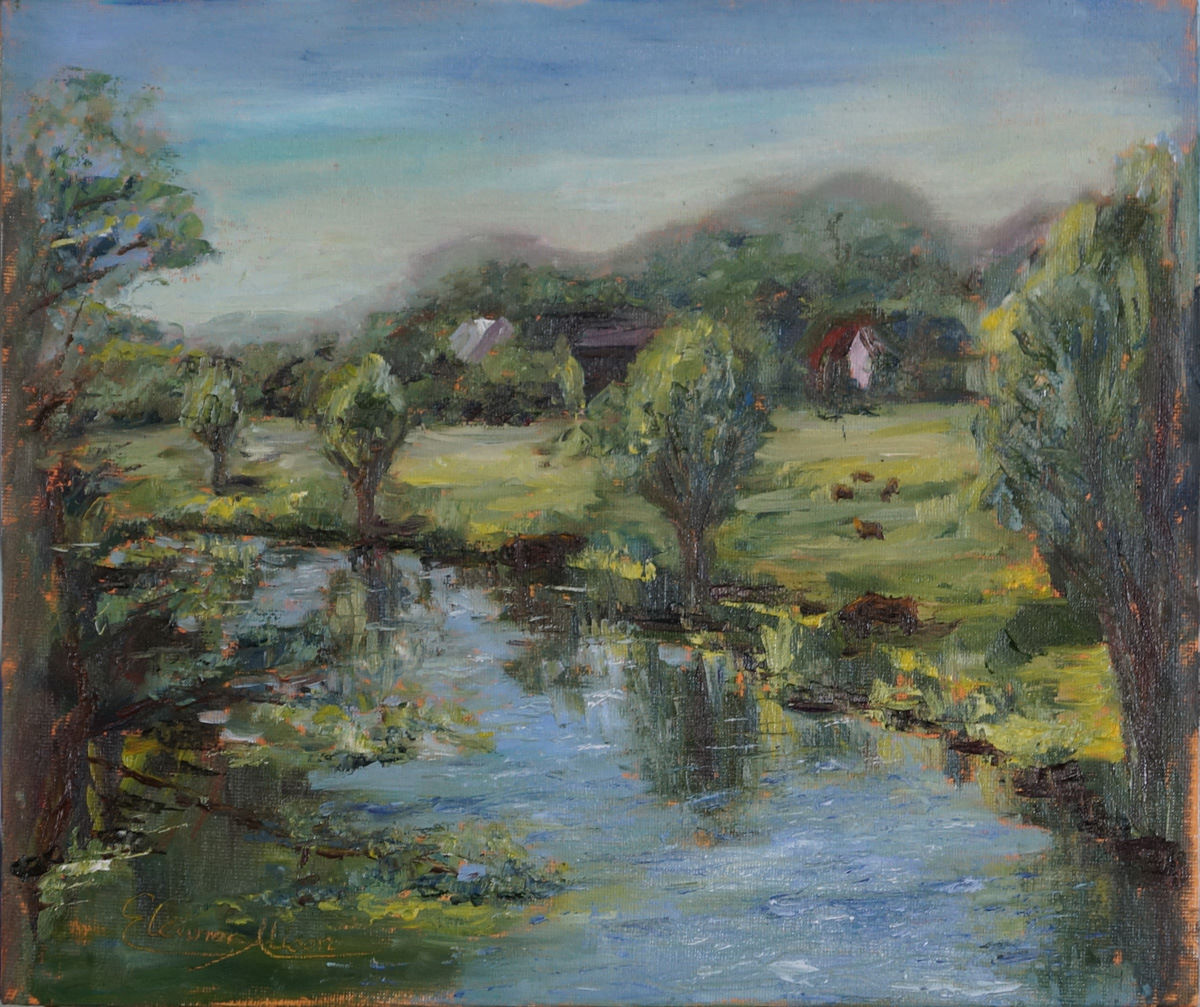 Eleanor Alison, 'Tranquil Water Meadow', River Stour, Sudbury, Oil, 12x10in, FOR SALE