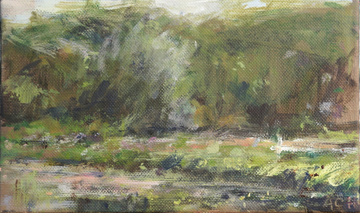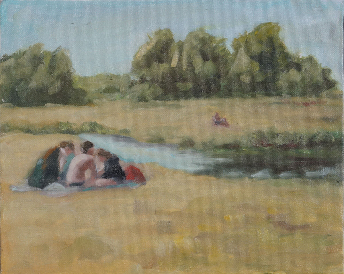 Artist Sarah Berbank Green, 'Meadow Bathers', Valley Trail, Sudbury, Oil, 8x10in, £120. Paint Out Sudbury 2018