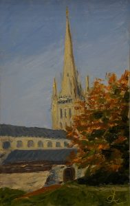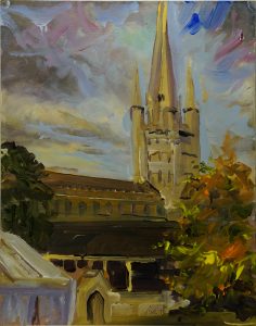 | 3 | Eleanor Alison | Autumn Spire | £120 | Artist Eleanor Alison, Autumn Spire, Norwich Cathedral, Oil, 12x8in, £120 |