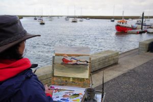 Artist Karen Adams painting Wells Quayside. Photo by Katy Jon Went