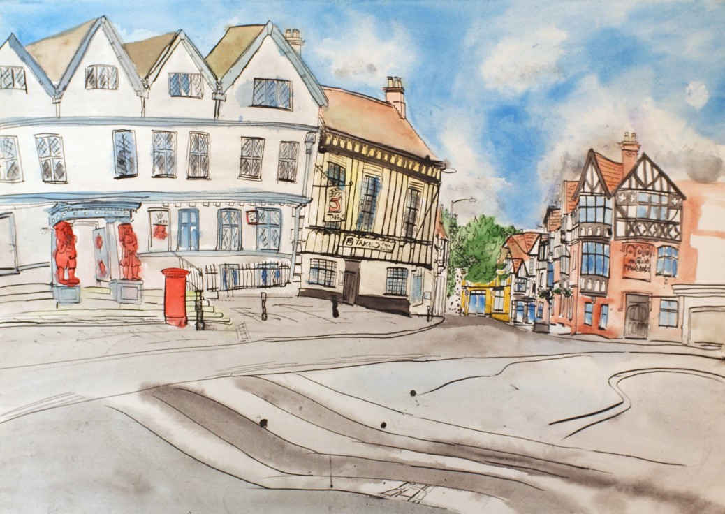 The Spirit of Cambridge award won by Girton-based artist Alice Thomson featured Magdalene Bridge with its punts, bicycles and the views towards Magdalene College and St Giles (Parish of the Ascension) on the slight hill on the horizon – our hospitable hub for the week of painting.