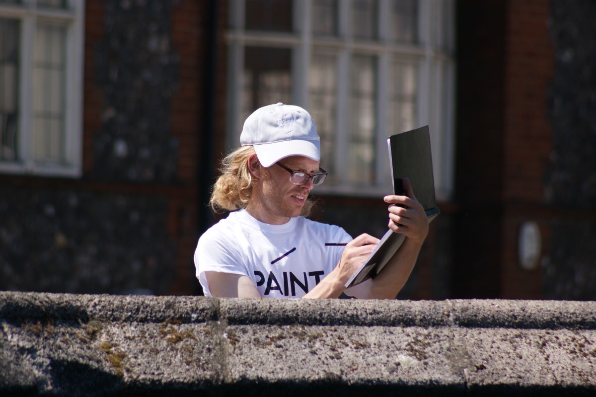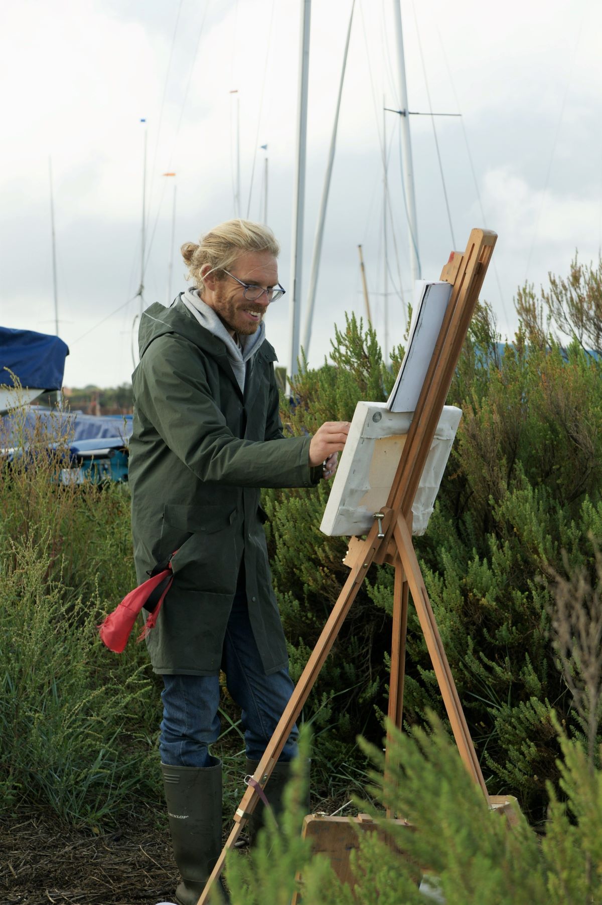 Artist Jack Godfrey painting at Blakeney, Norfolk Paint Out Wells 2017. Photo by Katy Jon Went