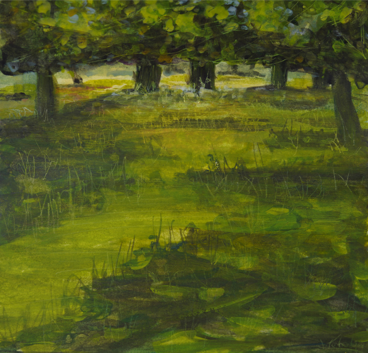 Artist Alfie Carpenter, Summer through the Trees, Wells-next-the-Sea, Mixed Media, 27x42cm, £425. Paint Out Norfolk 2020