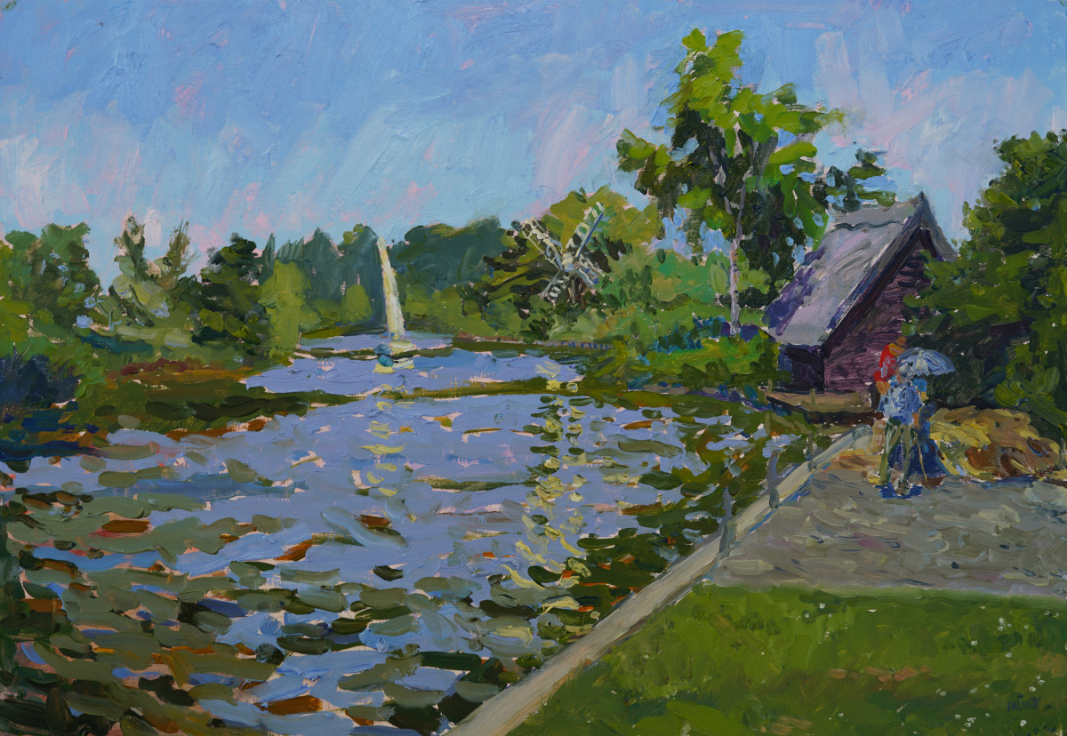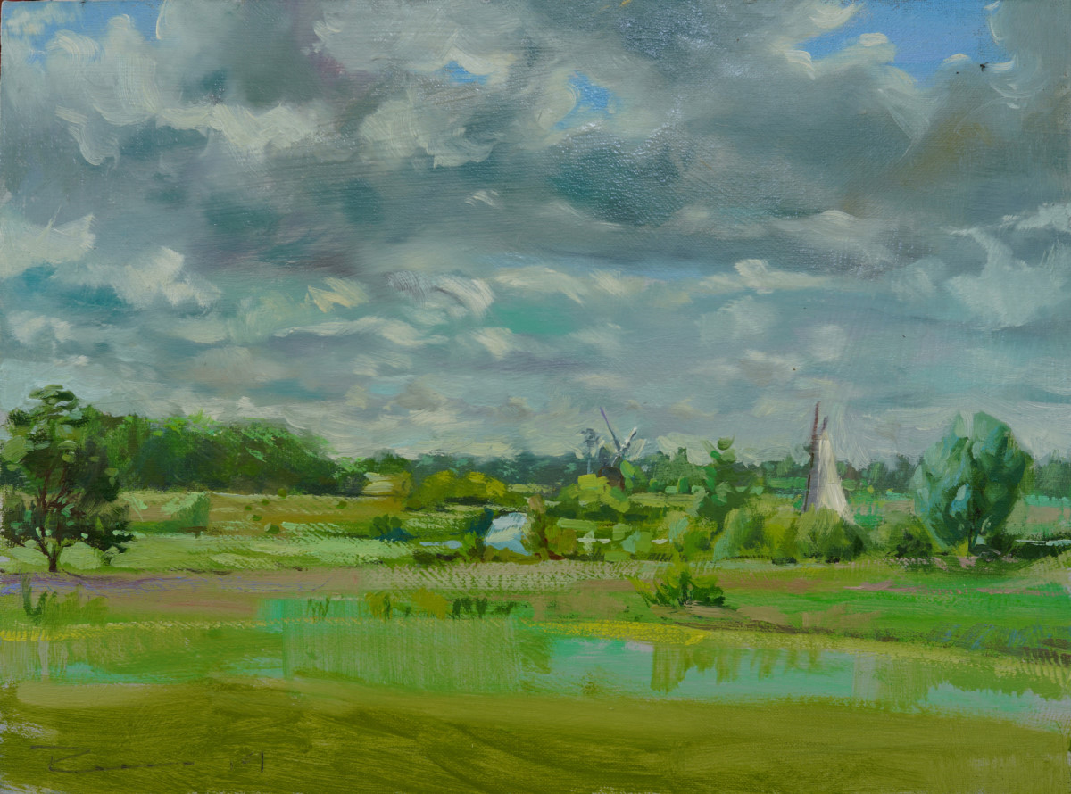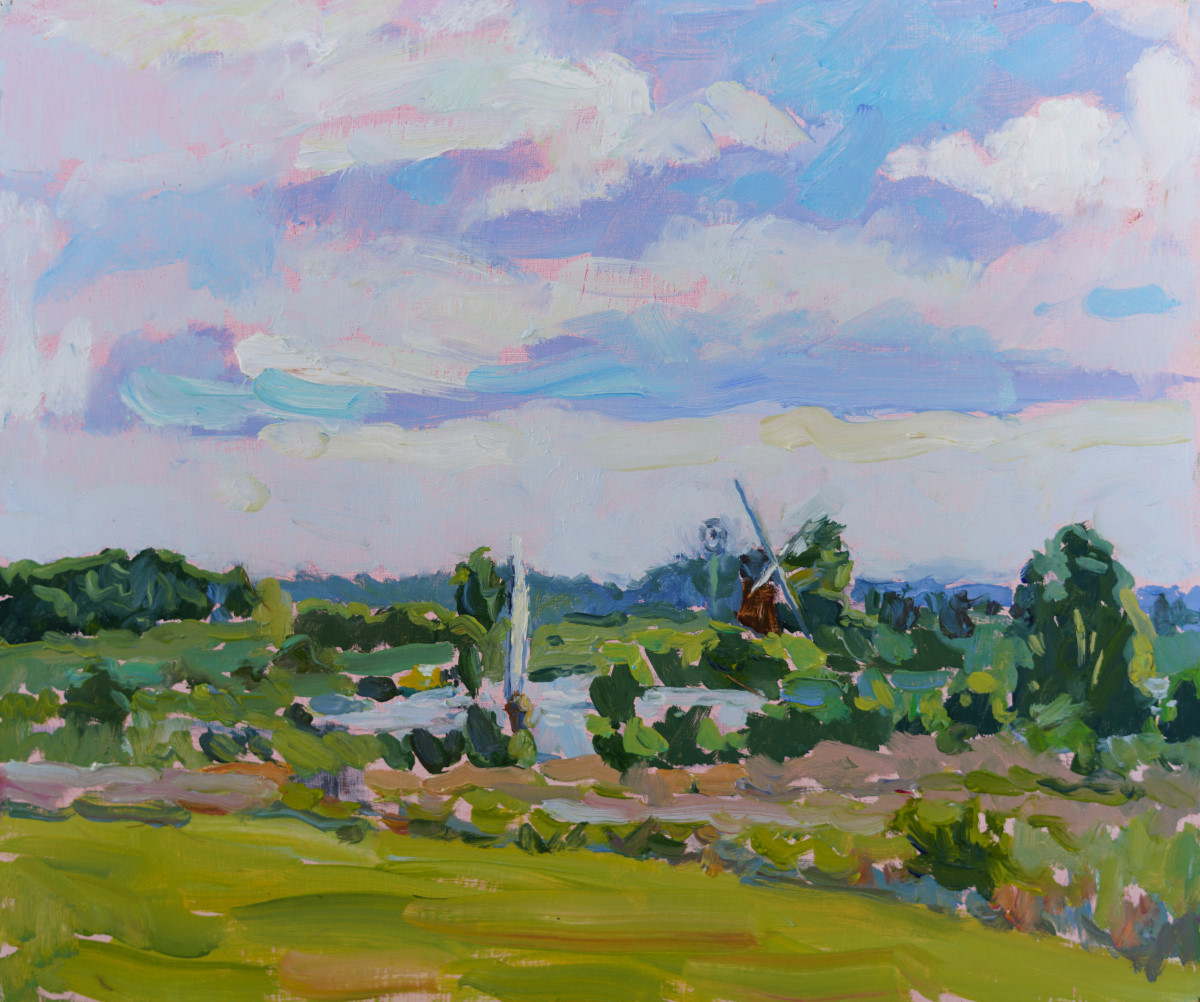 Artist Amanda Barrett, Berney Arms Windmill and Breydon Water, Burgh Castle, Oil