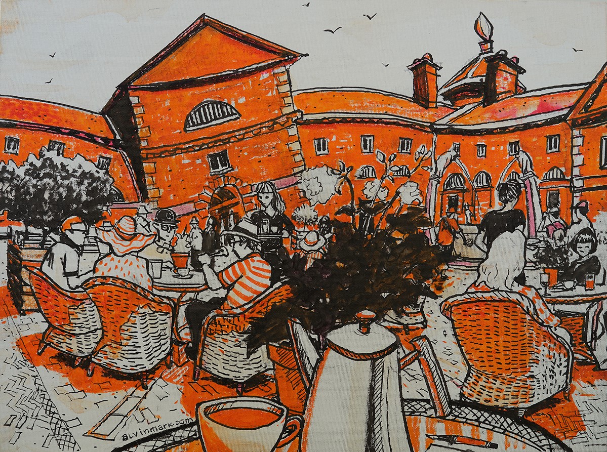 2020 will see us transport artists around the county to Georgian set-piece market towns, Victorian and art deco crumbling seaside splendour, replete with piers, funfairs, harbours and crab boats. The magnificent medieval architecture of Kings Lynn and Norwich will be supplemented with a return to our 2019 garden theme by taking in a Humphrey Repton red book garden or similar historic country house. A quick draw in front of one of the UK’s oldest and largest markets will provide more than a surge of adrenalin, draw crowds and create bonds with fellow artists.