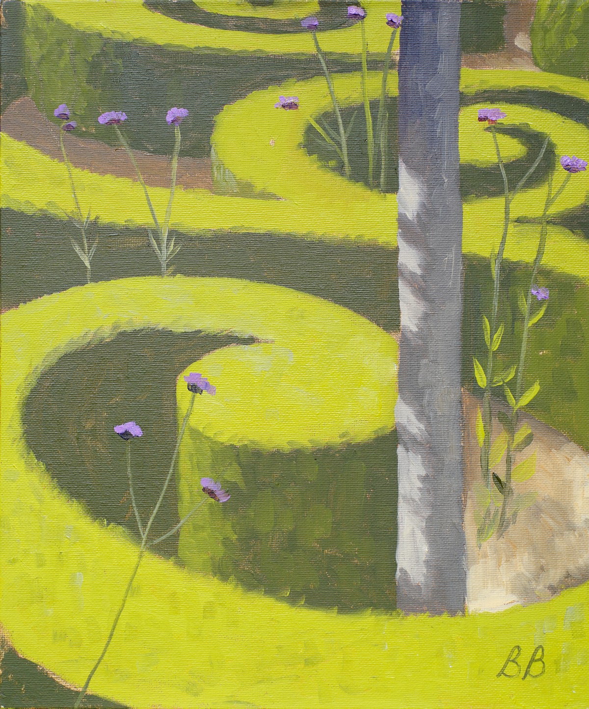 Artist Barbara Bernard, 'Box & Verbena', Houghton Hall Walled Garden, Oil, 12x10in, £300. Paint Out Gardens 2019