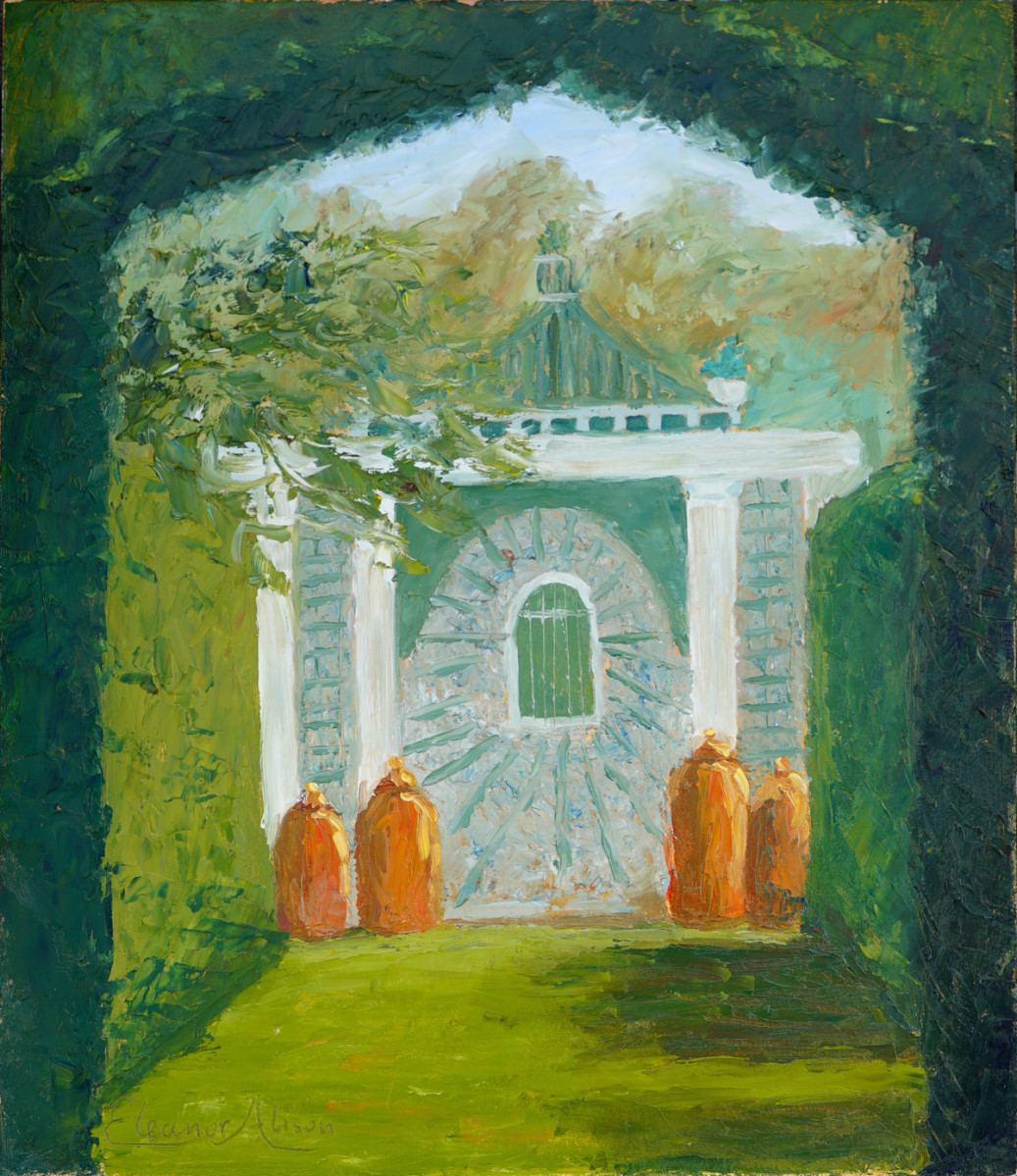 Artist Mindy Qin, Garden with Lake View in Blickling Hall, Norfolk, Oil, 8x10in, £200. Paint Out Norfolk 2022