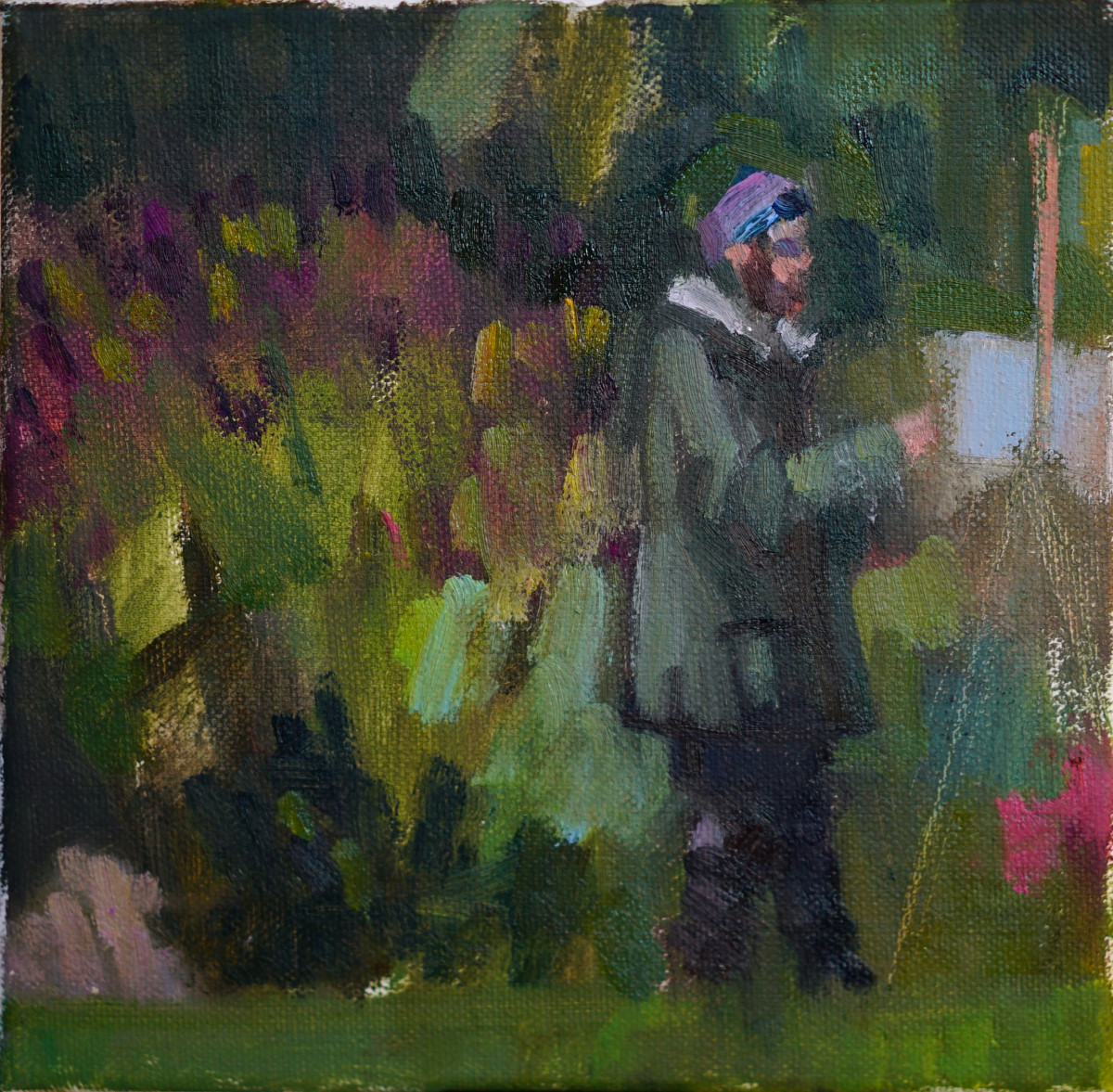 Artist Stephen Johnston, 'Gardening Blues', The Plantation Garden, Norwich, Oil, 16x20in, £350. Paint Out Gardens 2019