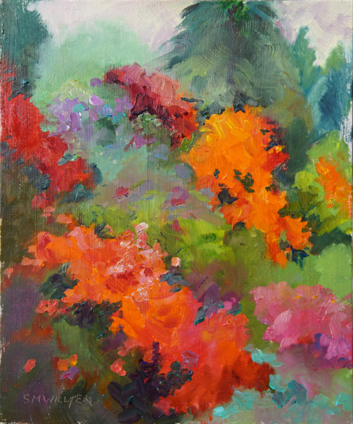 Artist Sue Wilmer, 'Colours of the Garden', Stody Lodge, Melton Constable, Norfolk, Oil, 10x12in, £175. Paint Out Gardens 2019