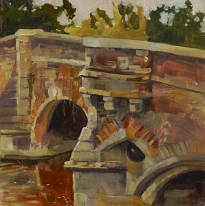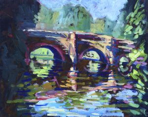 Artist Charlotte Kearsley, By the Bridge, Gooderstone Water Gardens, Norfolk, Oil, , £150. Paint Out Norfolk 2022