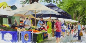 Artist Gail Dorrington, Cary’s flowers, Norwich Market, Acrylic, 23x29cm, £200.