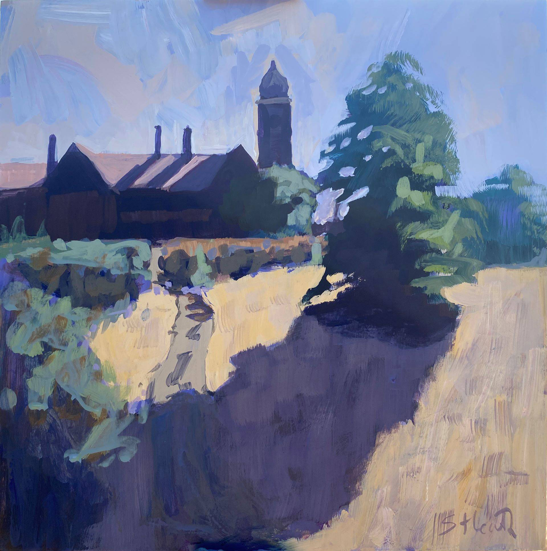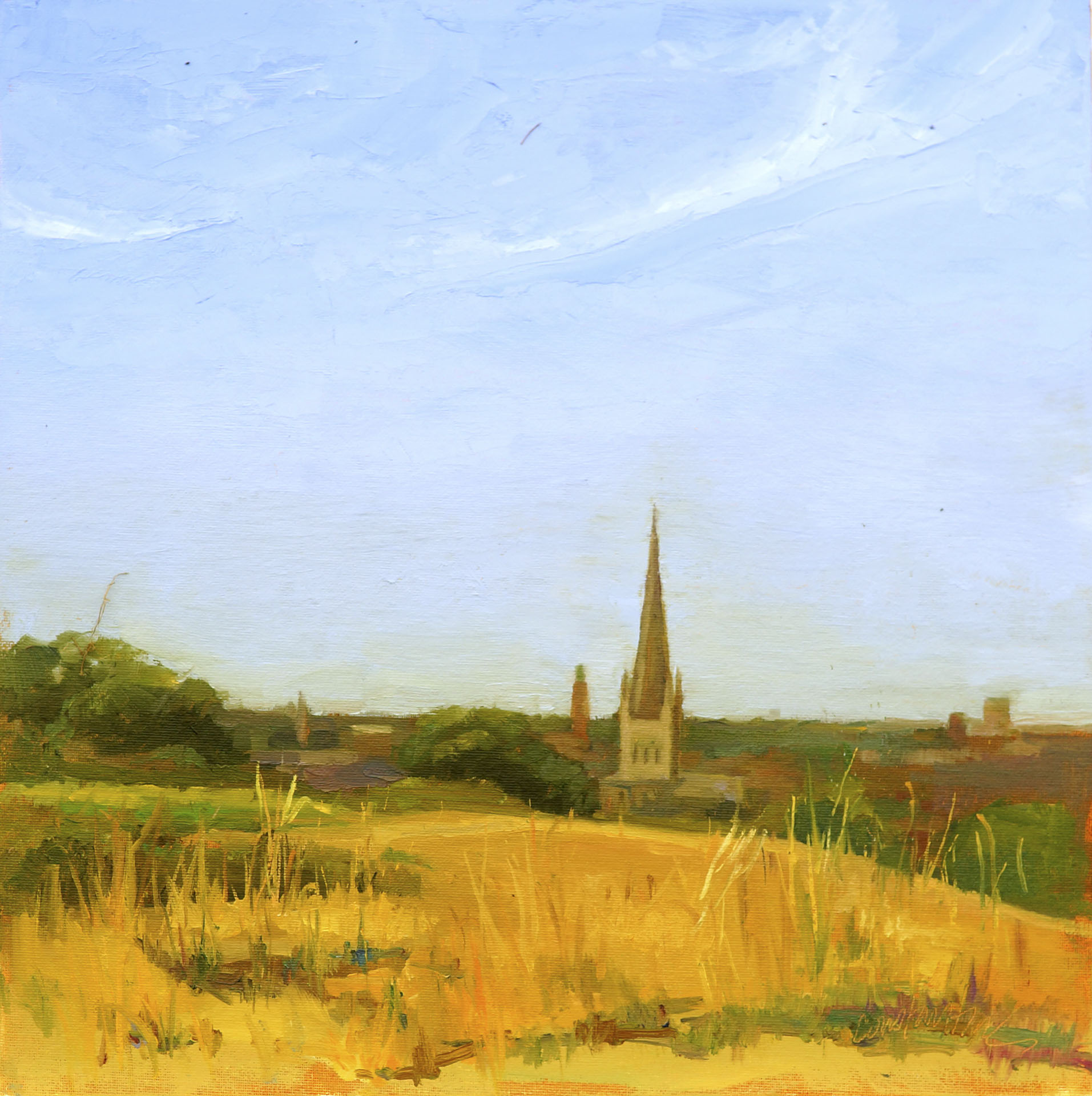 Artist Jude Chaney, From Thorpe Green towards Norwich, Thorpe, Other, 30x30cm, £200. Paint Out Norfolk 2020