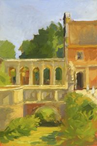 Artist Susan Isaac, 'Study of Hunworth Hall', Hunworth Hall, Norfolk, Oil, 32x23cm, £250. Paint Out Gardens 2019