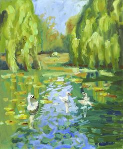 Artist Rachel Wright, Swan at the Water Gardens, Norfolk, Oil, 40x30cm, £495.