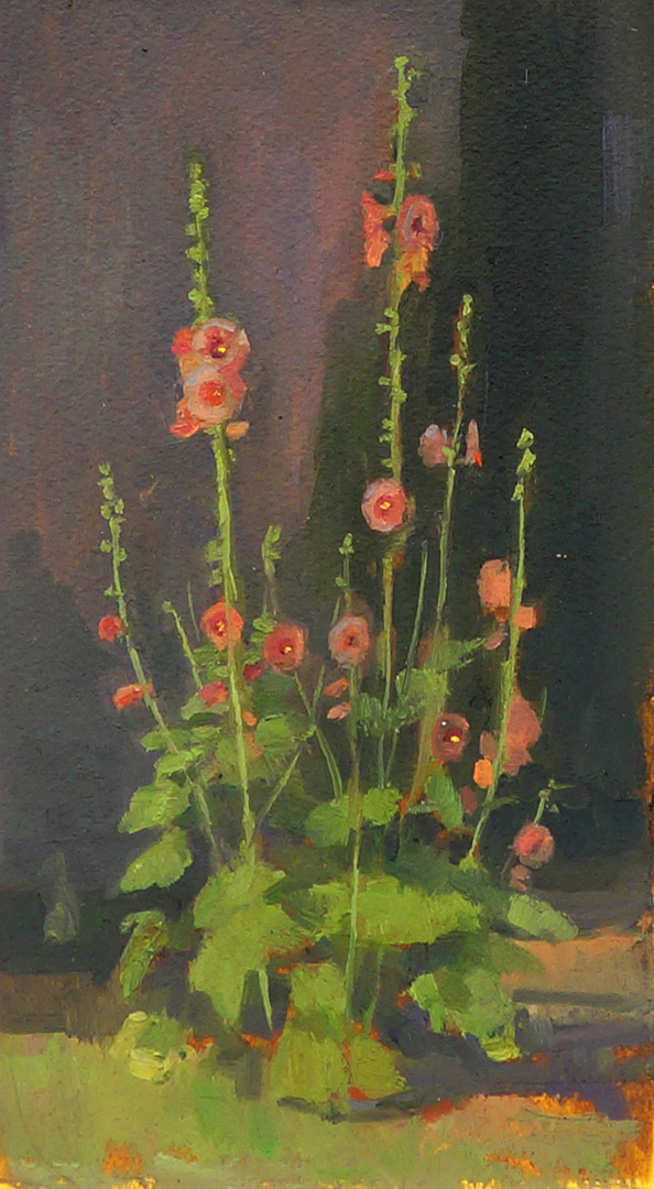 Artist Eleanor Alison, 'Rose Wall', Elsing Hall, Dereham, Norfolk, Oil, 12x12in, £250. Paint Out Gardens 2019