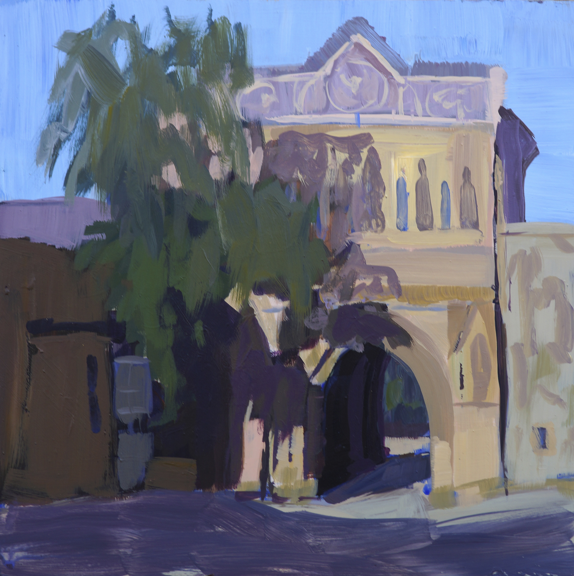 Artist Richard Bond, October dusk, Cathedral Close, Norwich, Oil, 8x10in, £150